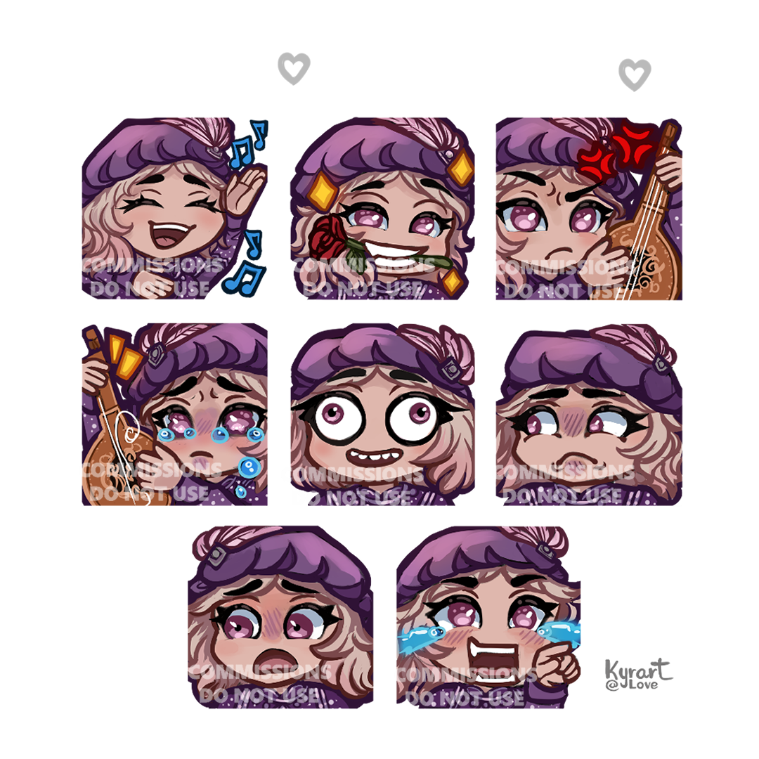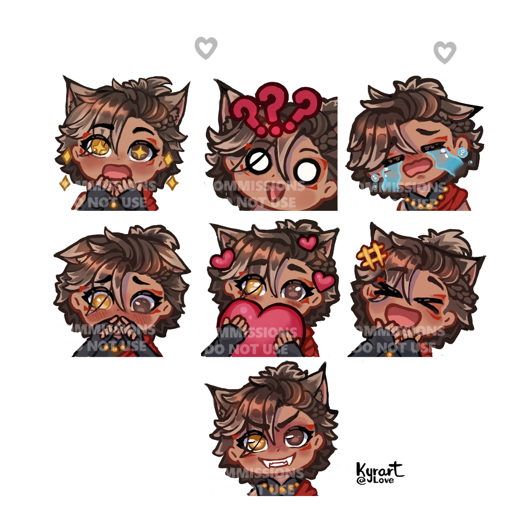 For the Twitch platform, there is an "emote attribution" option where you can list me as the artist of the emote. You can find my profile on twitch called "kyrartlove"